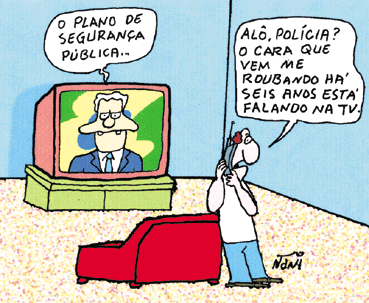 "Antigamente, os cartazes nas ruas, com rosto de criminosos, ofereciam recompensas; hoje em dia, pedem que votem neles"!